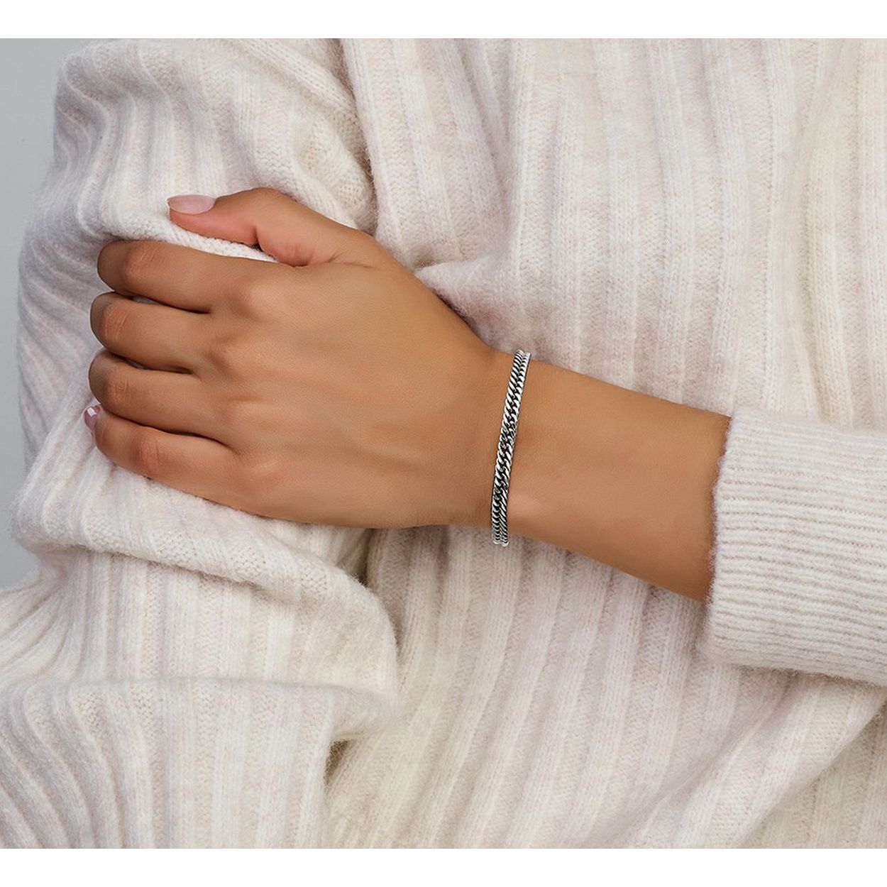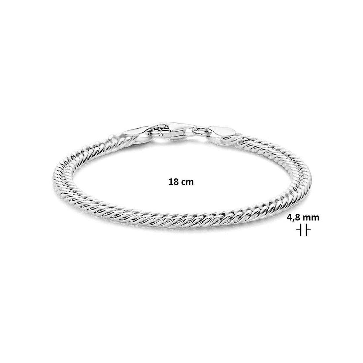 Gerhodineerd 925 zilveren gourmet armband met een schakelbreedte van 4.8mm. De armband heeft een draaglengte van 18cm en een stevige karabijn sluiting.