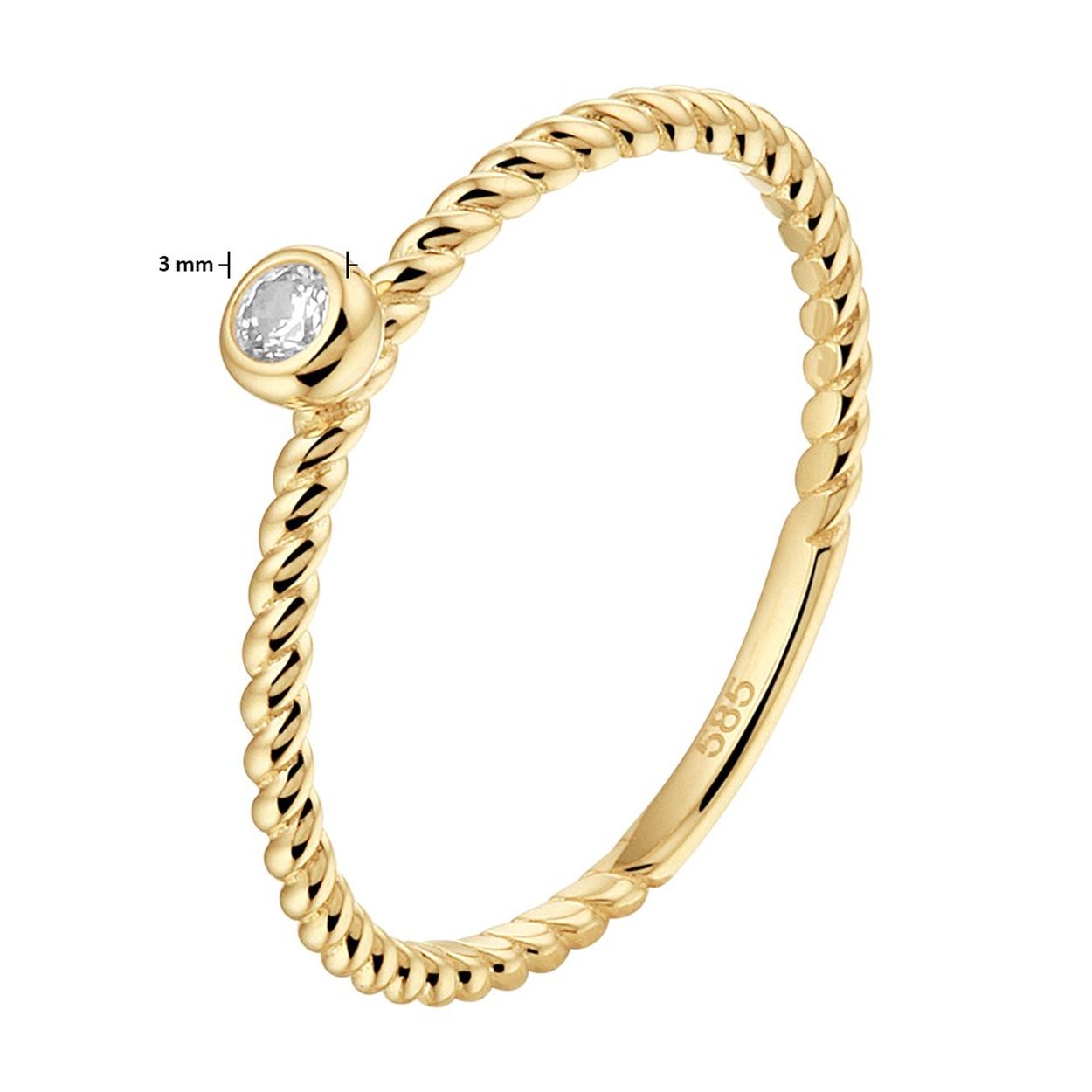 14k Geelgouden aanschuifring uitgevoerd met een schitterende zirkonia. De ring heeft een breedte van 3mm.