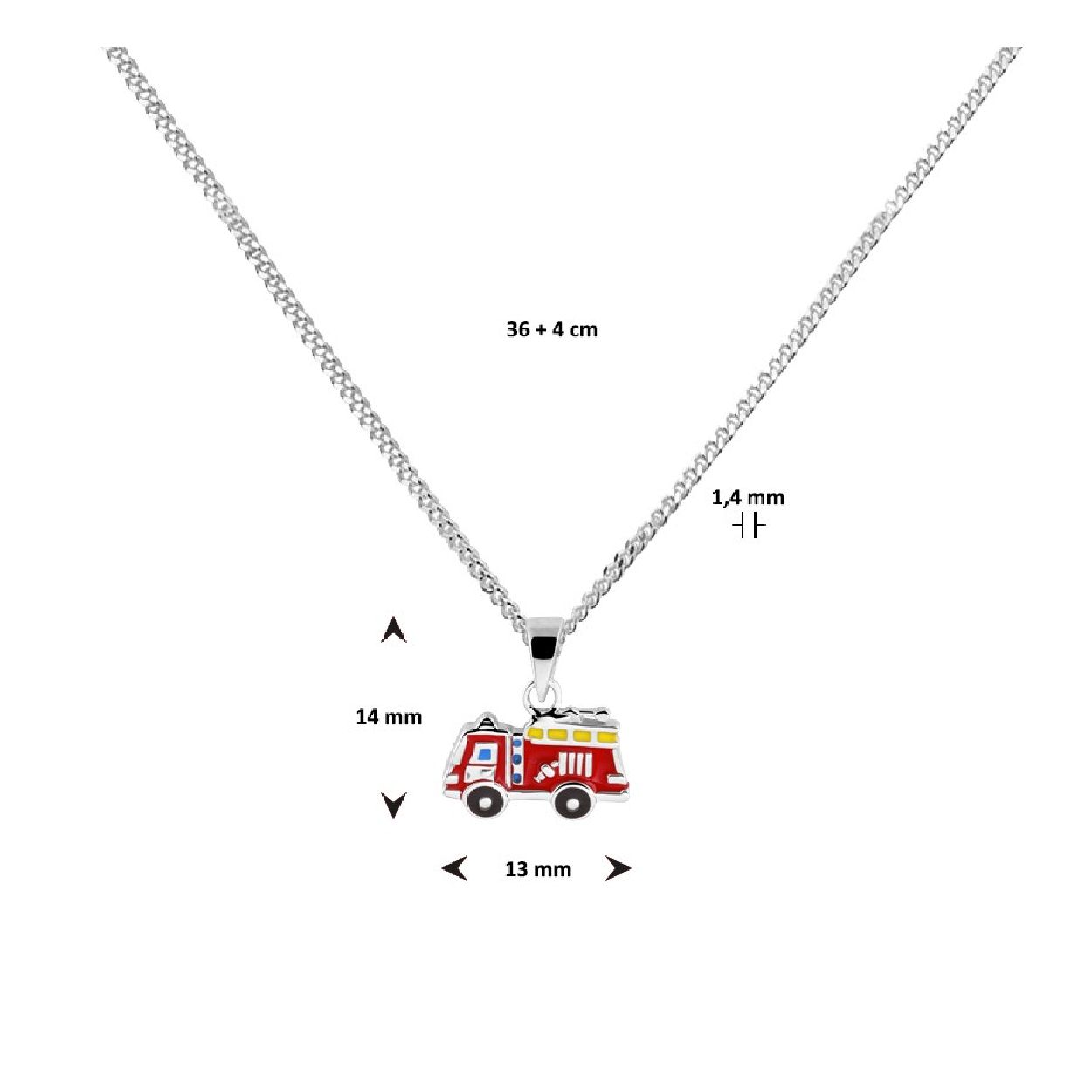 De collier is gemaakt van gerhodineerd zilver en is roodkleurig. Het is een sieraad voor kinderen.
