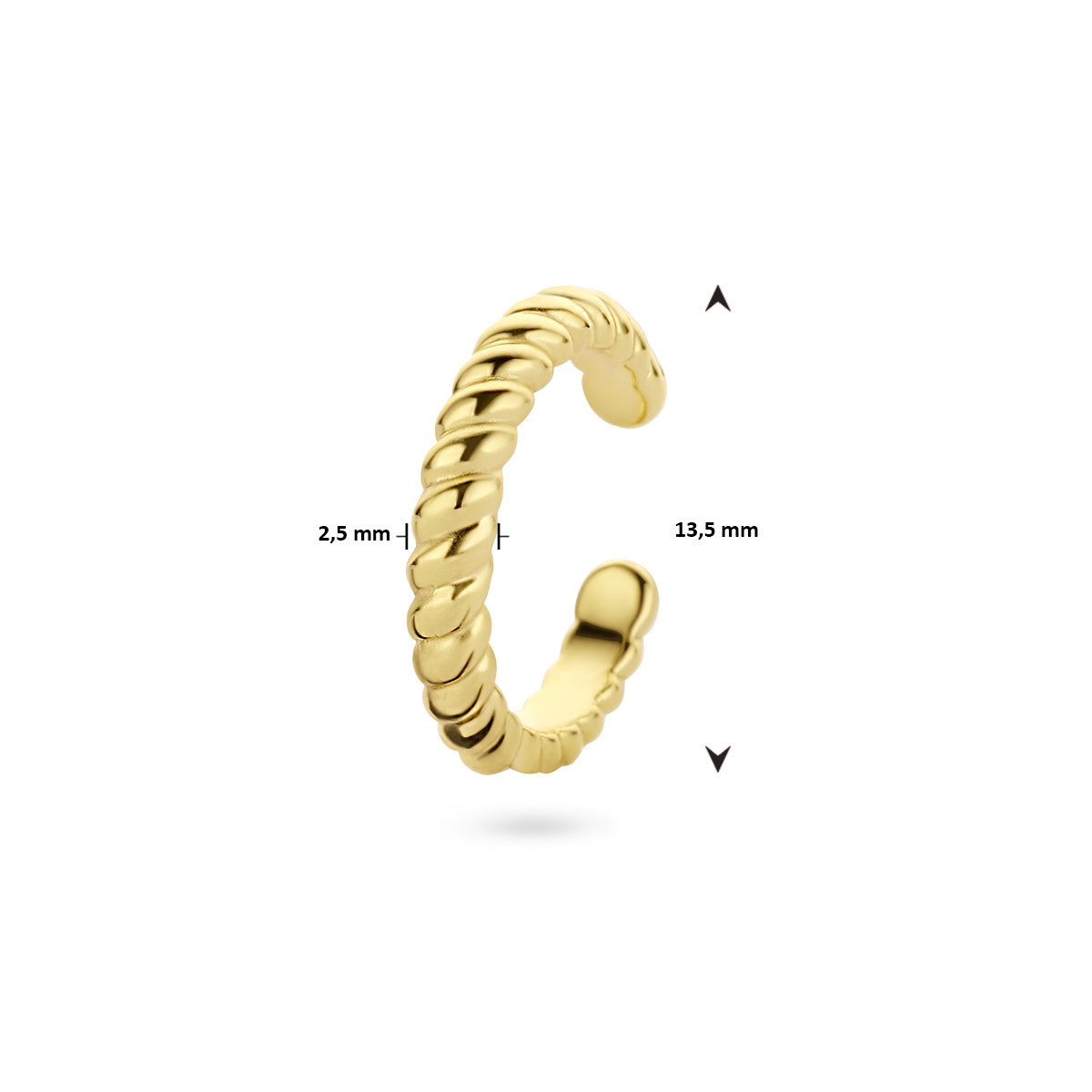 Geelgoud op 925 zilveren earcuff. De earcuff heeft een afmeting van 13.5x2.5mm en wordt per stuk verkocht. Geen garantie op plating.