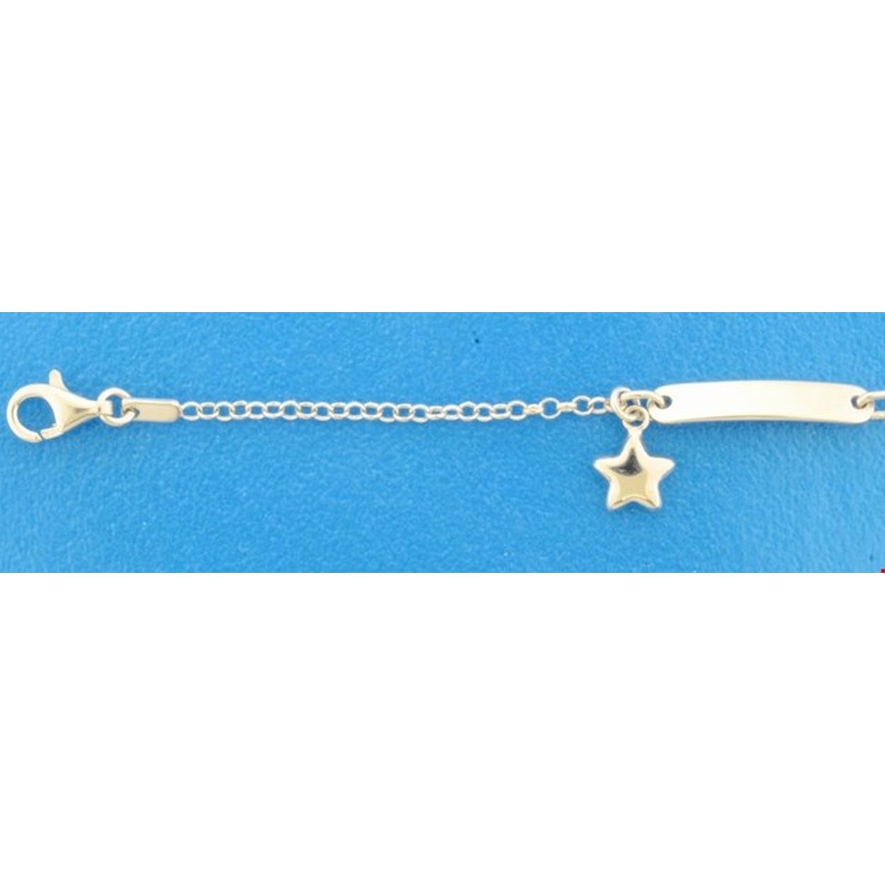 Beschrijving: Gerhodineerd zilveren armband uitgevoerd met een graveerplaatje en een losse ster hanger. De armband heeft draaglengtes van 11 en 13 cm en is voorzien van een stevige karabijn sluiting.