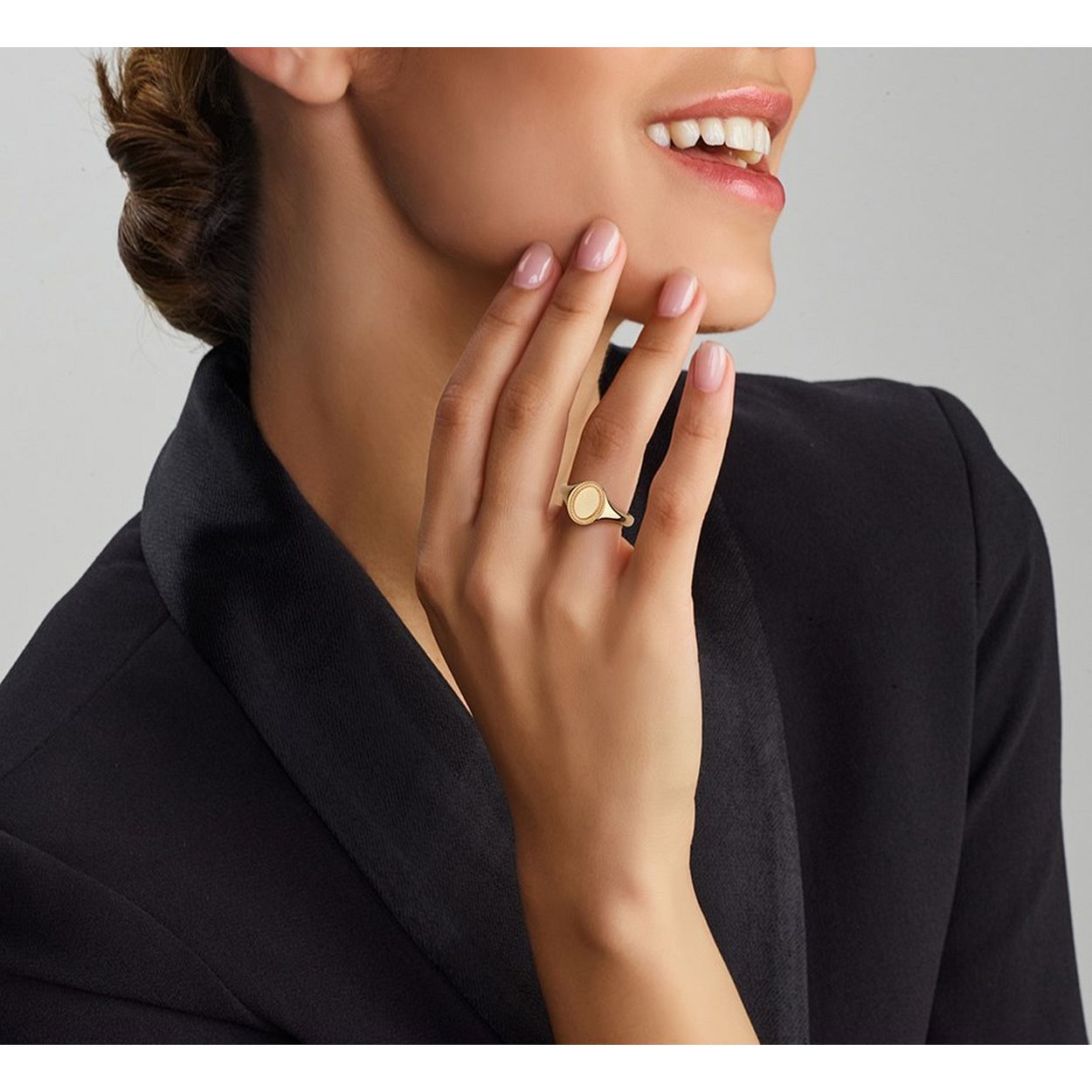 14k Geelgouden graveerring. De ring heeft een breedte van 9.5 mm.