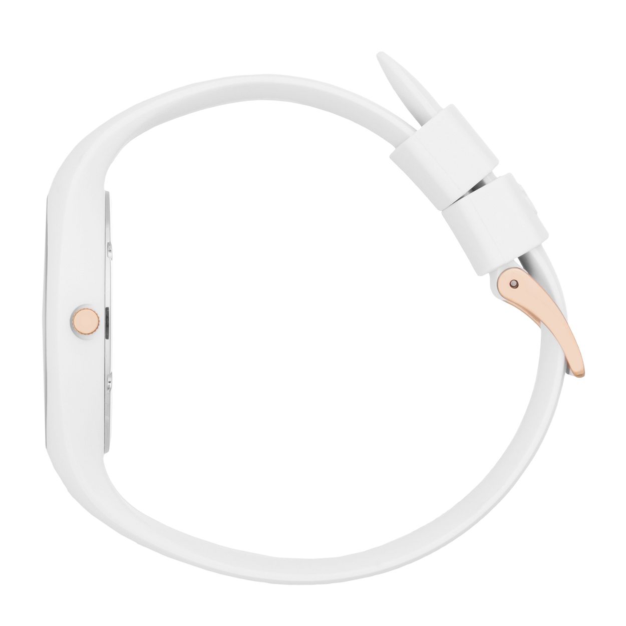 Dit unieke horloge van Ice-Watch uit de ICE flower serie White sage met nummer IW020516 heeft een gladde witte doorlopende siliconen band met ros�kleurige gesp die het uurwerk omringt. Op de witte wijzerplaat is een afbeelding van roze gekleurde bloemen te zien en de uursaanduiding is dmv ros�kleurige strepen en wijzers. Het horloge heeft een doorsnee van 40mm een mineraalglas en is 10 ATM.