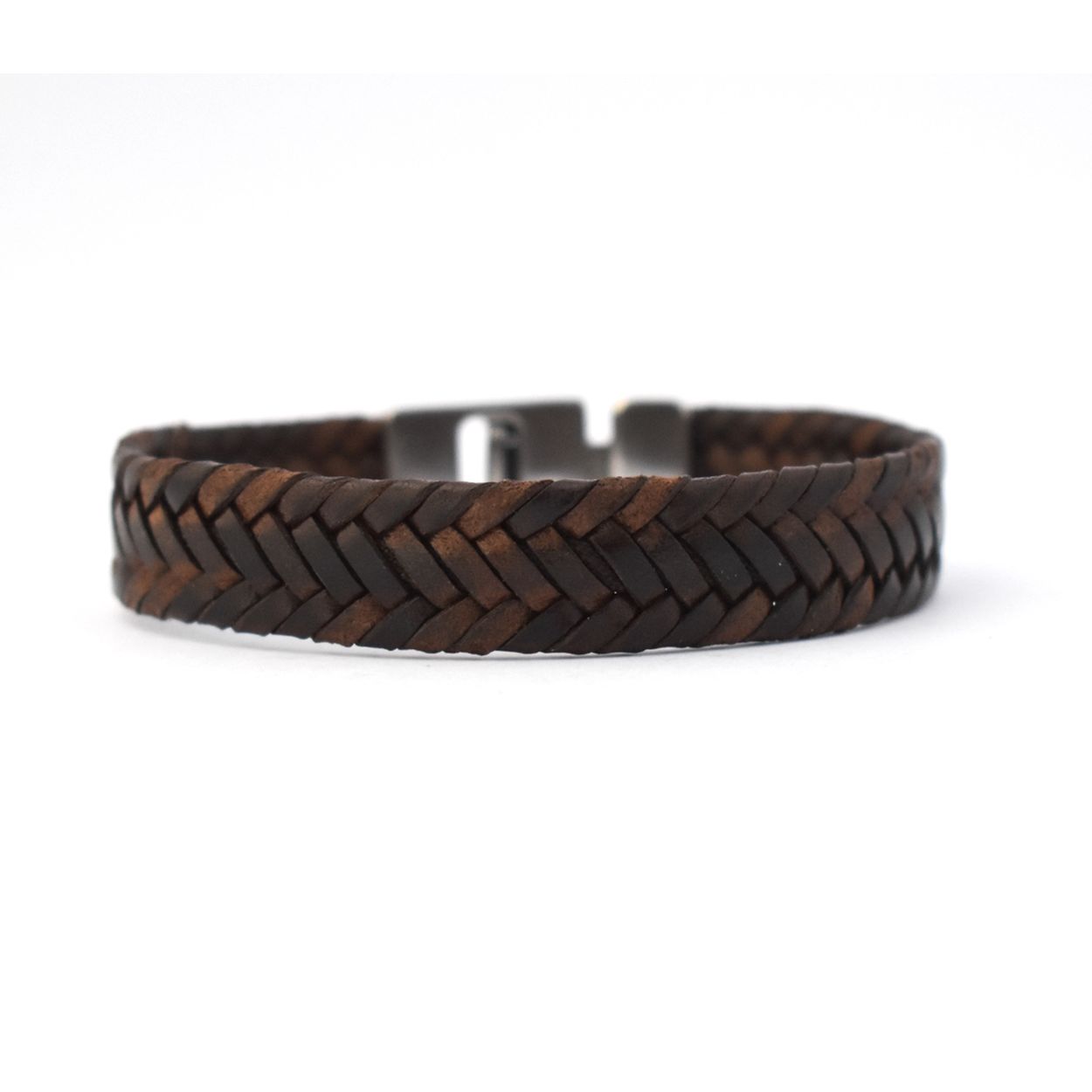 Dit is een prachtige Josh herenarmband gemaakt van metaal en leer. De kleuren van deze armband zijn zilver en bruin. De maat van dit sieraad is L (225mm).