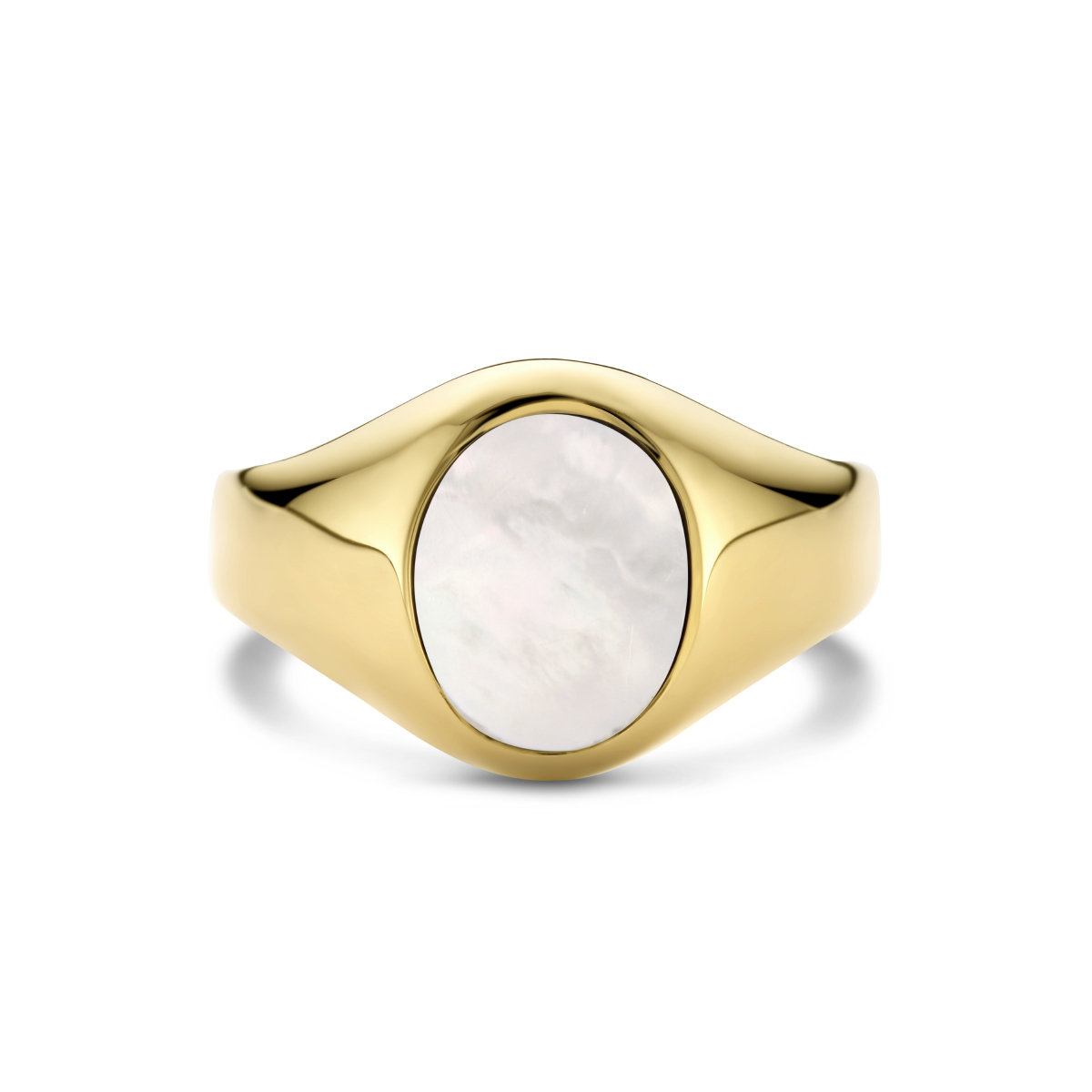 14k Geelgouden ring uitgevoerd met een schitterende parelmoer.