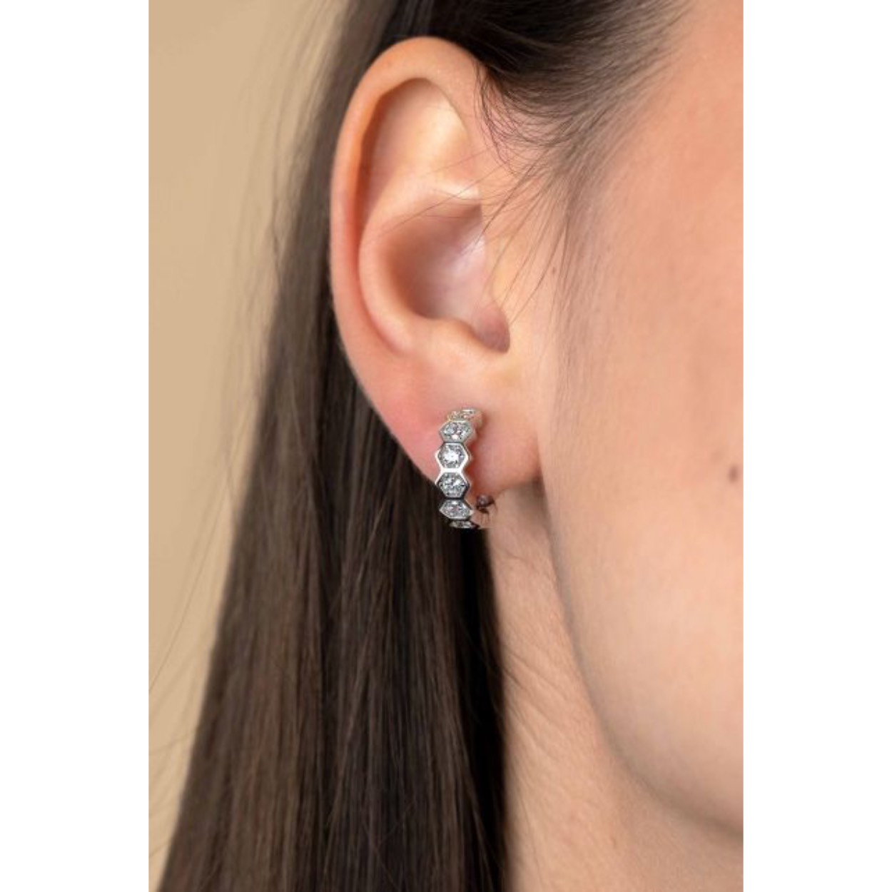 15mm ZINZI zilveren luxe oorringen met zeshoeksvormen bezet met witte zirconia's en klapsluiting ZIO2543