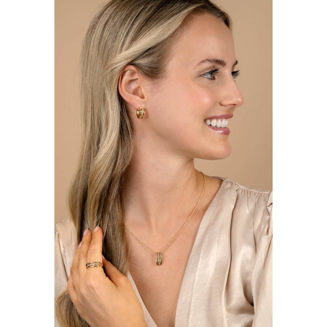 ZINZI gold plated zilveren multi-look ring (6mm breed) in golvend design. De middelste baan is vol bezet met witte zirkonia's en twee ronde zirkonia's zijn speels verdeeld over de ring. Vervaardigd van eerste gehalte zilver (925) en extra geel verguld.