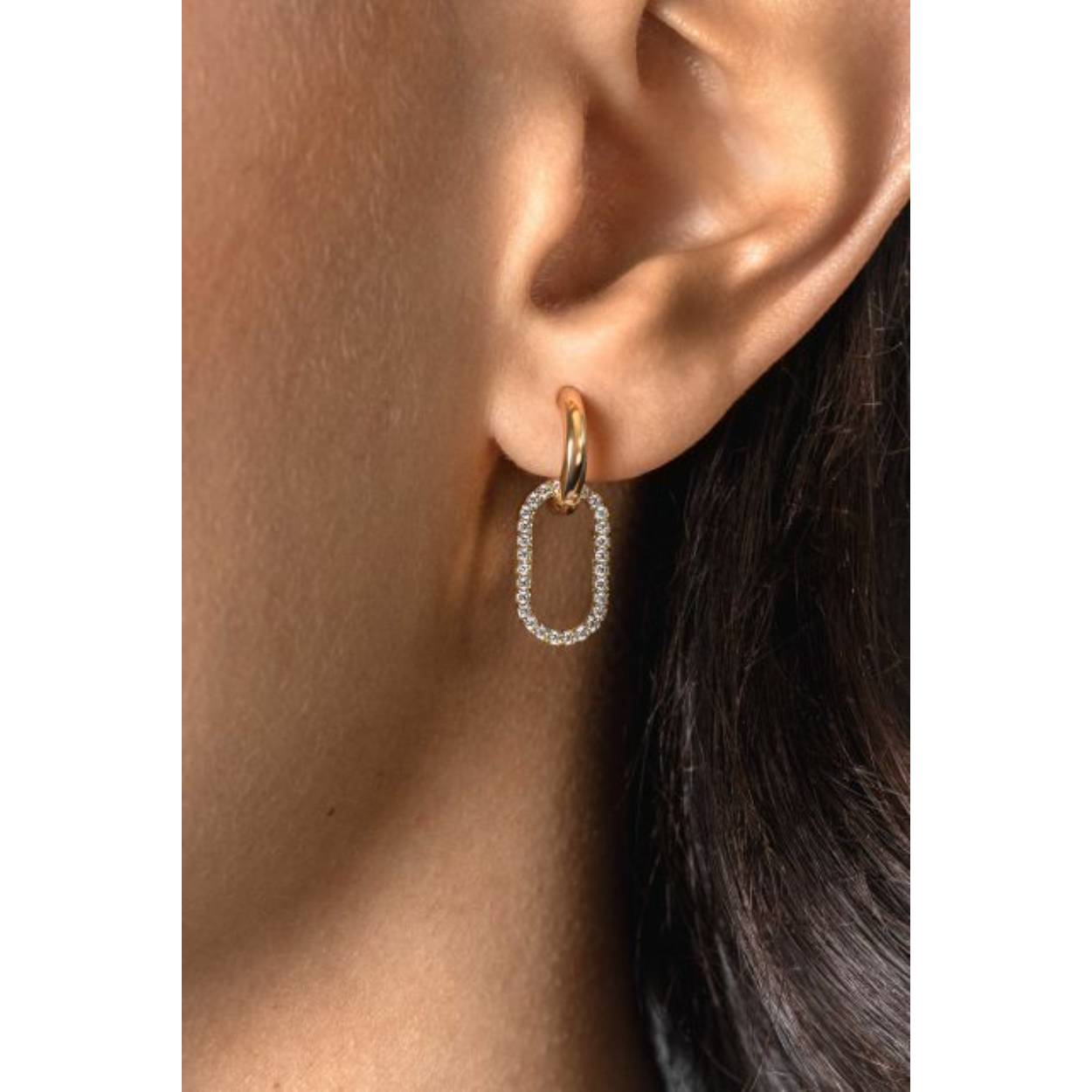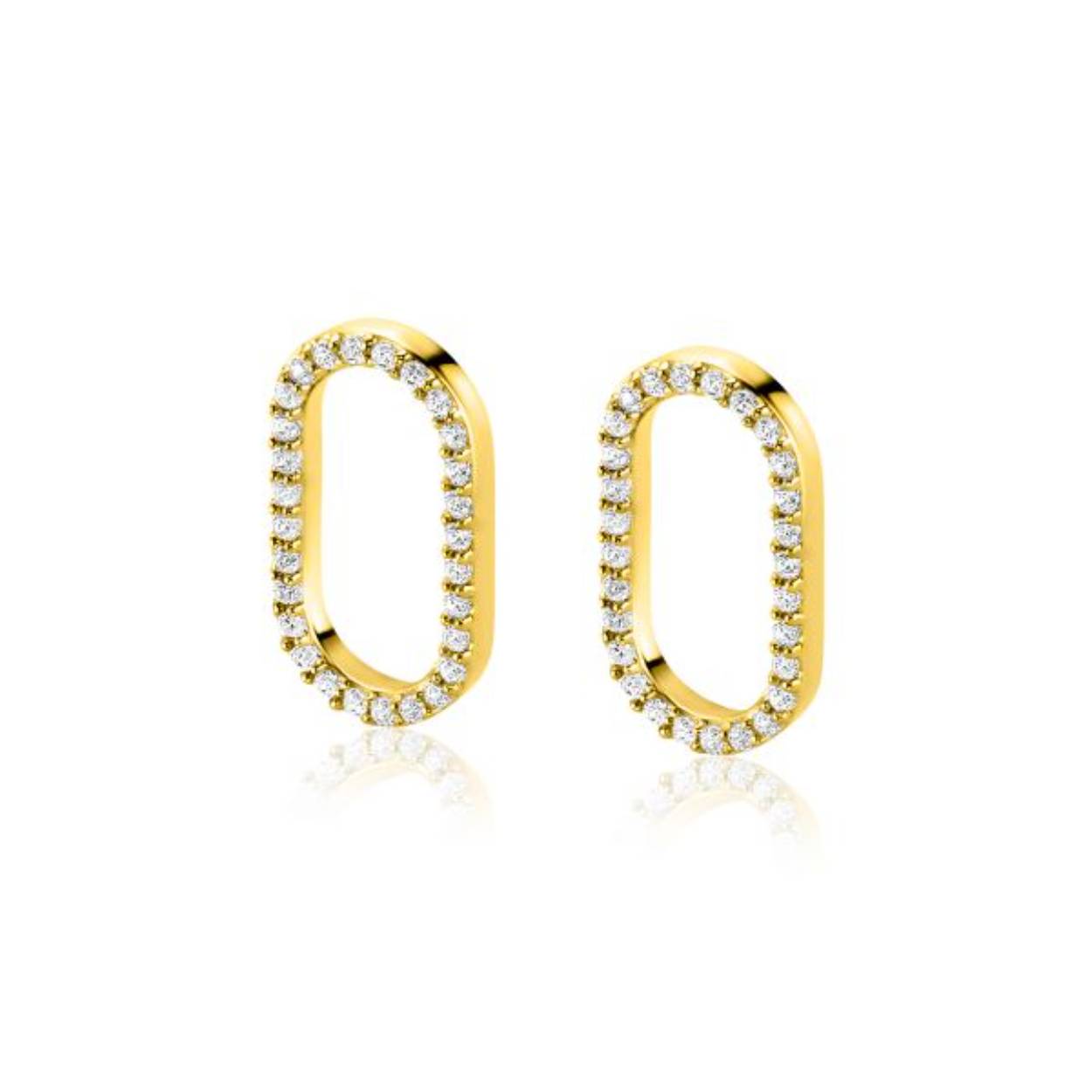 15mm ZINZI gold plated zilveren oorbedels ovale vorm witte zirconia's ZICH2444 (zonder oorringen)